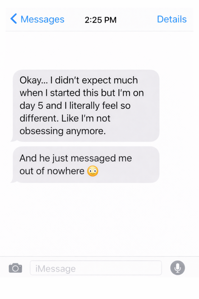 I didn’t fully believe it would work, but within a week something felt lighter. Then one night he randomly texted me after months of silence. We started talking again slowly, and for the first time I didn’t feel anxious or overattached. I finally felt in control again.